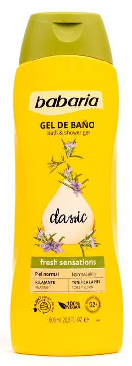 شامپو بدن مدل کلاسیک با رایحه رزماری محصولی بینظیر از برند اسپانیایی ®babaria می باشد که از آن بعنوان یک آبرسان و تغذیه کننده پوست نیز می توان استفاده کرد. این شامپو بدن حاوی گیلیسیرین و رزماری می باشد و استفاده از آن احساس آرامش بخشی بهمراه دارد. این شامپو مناسب انواع پوست می باشد. این محصول کاملا وگان می باشد و تا %92 درصد از ترکیبات آن از مواد کاملا طبیعی تهیه شده است.