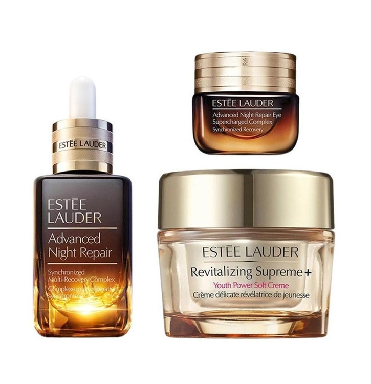ست مراقبت پوستی از برند بسیار معتبر Estée Lauder که شامل کرم دور چشم شبانه ، سرم ترمیم کننده و آبرسان شبانه و کرم ضد چروک و جوانساز قوی می باشد. این پکیج بسیار محبوب و همچنین مقرون به صرفه یک بسته ویژه Travel Exclusive می باشد که در لهستان تولید و روانه بازار اروپا گردیده است.